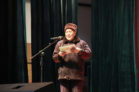 92岁的张发祥老人(二等奖获得者)在现场诵读了获奖作品