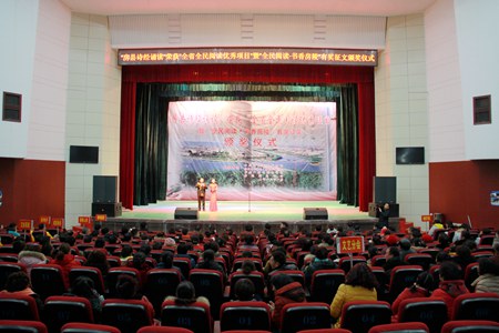近年来,我县广泛开展全民阅读活动,借以提高广大市民综合素质。日前,“房县诗经诵读”成功入选“全省全民阅读活动优秀项目”,全市仅有我县获此殊荣。2015年7月1日,我县启动了以“全民阅读·书香房陵”为主题的有奖征文活动,受到了社会广泛关注,先后收到投稿300余篇,部分作品在《今日房县》报、今日房县网刊登。通过评选,戢建华、杨琦珍等38名作者获奖。仪式上,受省全民阅读办委托,徐锦凤向县文体局颁发了“全省全民阅读活动优秀项目”奖牌。徐锦凤、周建国等分别向征文活动获奖者颁发了荣誉证书;特等奖获得者戢建华、92岁的张发祥老人(二等奖获得者)在现场诵读了获奖作品。