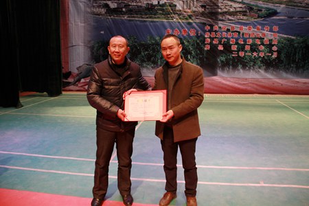 县政协副主席周建国为征文活动特等奖获得者颁发荣誉证书
