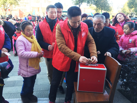 “在农历新年来临之际,又一次的人口大迁徙拉开了序幕,那是因为家里有翘首期待他们的父母和好久没有见面的孩子,可是在房县的十里八乡有这么一群人,他们也是翘首期待着,可她们期待的是年快点过去,因为他们的爸爸和妈妈已经永远的离开了他们……为了让他爸们感受到社会的温暖及房县义工之大爱,我们将带着这些小小的关爱分别抵达12名小孤儿的家中,为他们送去温暖,让他们穿上新棉服,新鞋子,背上新书包,吃上一顿香喷喷的饭……”这是大爱义工在众筹网的活动初衷介绍。