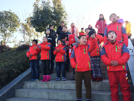 捐赠仪式结束后,孤儿们参观了地税局精神文明建设,聆听了地税讲解员解说税收基本常识。随后在义工带领下乘车先后游览了一级路、音乐喷泉、东城工业园、东城小学、诗经广场等地。晚上,聚餐完毕,前往电影院观看了免费动画电影《疯狂大爆炸》,随后在酒店住宿一晚。