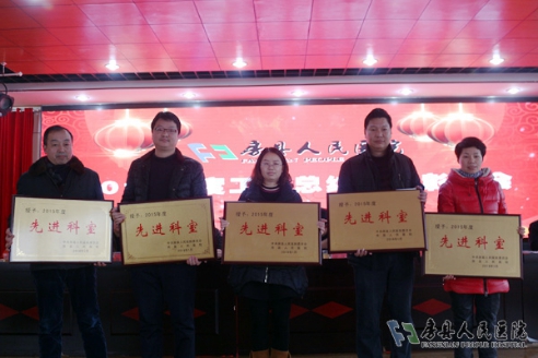 为鼓励先进,激励广大干部职工团结上进、爱岗敬业,无私奉献,提高大家的工作积极性,副院长刘肖峰、赵斌分别宣读了2015年度先进党支部、先进科室、优秀共产党员、先进工作者和扶贫工作先进个人以及医疗安全科室的表彰决定。医院领导班子分别为1个先进党支部、5个先进科室、6名优秀共产党员、41名先进工作者、1名扶贫工作先进个人、11个医疗安全科室颁发了荣誉证书。
