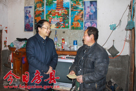 今日房县网讯 记者 吴宏强 报道: 4日,县长蔡贤忠来到城关镇八里村困难群众和部分退休老干部家中走访慰问,给困难群众、退休老干部送去新年祝福和慰问金,把党和政府的美好祝愿和亲切问候送到大家心坎上。县政府党组成员付必久参加走访慰问活动。