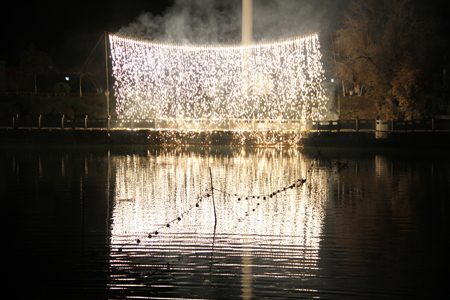 伴着呼啸声,一团团烟花带着红红的火星窜上了天空,漫天飞舞的烟花打破了夜空的宁静,形状和颜色各不相同,将夜空染成了彩色的画布,像灯笼、梅花、葵花,焰火瀑布、精美的造型烟花以及高空礼炮烟花更是激发出现场现场观众一波波的鼓掌和欢呼声,数万市民感受了元宵夜绚丽多彩的美景。