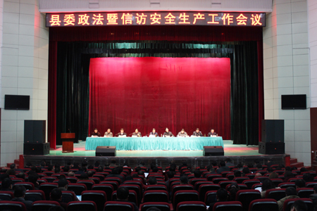 蔡贤忠强调,一是要坚定不移的把稳定和安全生产作为头等大事来抓,把握好稳定安全生产的关键,细致入微抓好基层基础工作,加强网络化和网格化建设,发挥好网格管理社会事务的作用,定期开展矛盾、隐患调处排查;二是要坚定不移的发挥好政法队伍的主力军作用,坚持党的领导,坚持信法、学法、守法,处理好重手打击和源头防范的关系,把握好宽严相济的政策,处理好打击犯罪和服务发展的关系;三是要坚定不移的畅通信访渠道、落实信访责任,要带着感情处理信访事务,让群众有诉求渠道,加快建立县长热线,扎实推行阳光信访,切实维护和谐稳定的社会局面;四是要坚定不移的用铁腕、铁面、铁心、铁规的“四铁”精神狠抓安全生产工作,加强重点领域专项整治,治理一批安全生产突出问题,遏制各类事故的发生;五是要坚定不移的抓好综治信访安全生产队伍建设,用制度管人,从严格落实制度上提升队伍能力和执法水平,进一步提升队伍整体素质和形象,为推动我县经济社会跨越发展,营造太平祥和的政治人文环境保驾护航。