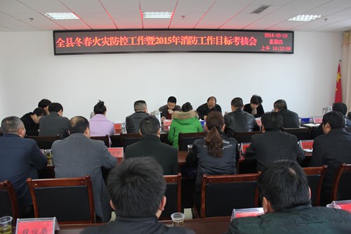 今日房县网讯 记者 陈锐 报道: 3月10日,市政府考核组来房对我县冬春火灾防控和2015年消防工作目标考核情况进行考核检查。副县长、公安局长柯正洪出席考核会,并代表县政府向考核组汇报了冬春火灾防控和2015年全县消防工作。