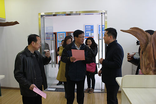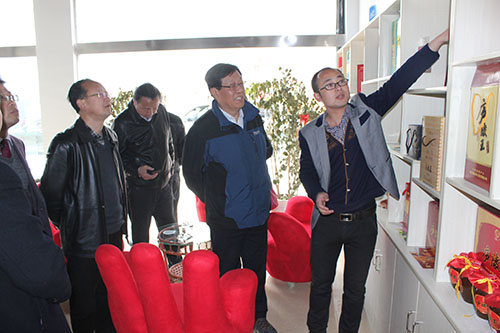 图为王耀辉一行在湖北爱拉屋电商公司调研