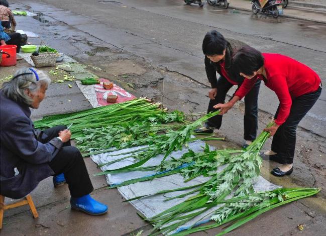 到了五月端阳,艾蒿、菖蒲、槐皮又上市了,城镇居民收藏晒干,熬水洗澡,可治皮肤骚痒。