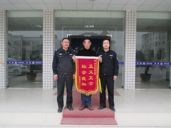 今日房县网讯 通讯员 许世鹏 报道: 近日,红塔镇党家湾村村民童某专程来到红塔派出所,将一面印着“正义卫士,社会良知”八个大字的锦旗送到了民警的手中。
