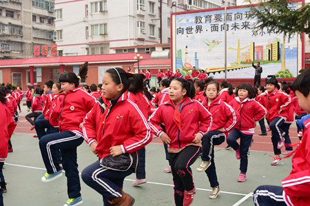 今日房县网讯 通讯员 何艳 吴光梅 报道: “Left、 left、right、 right、left、right,go go go……”伴随着欢快的音乐声,县实验小学全校3000多名学生聚集在操场上学习集体舞。