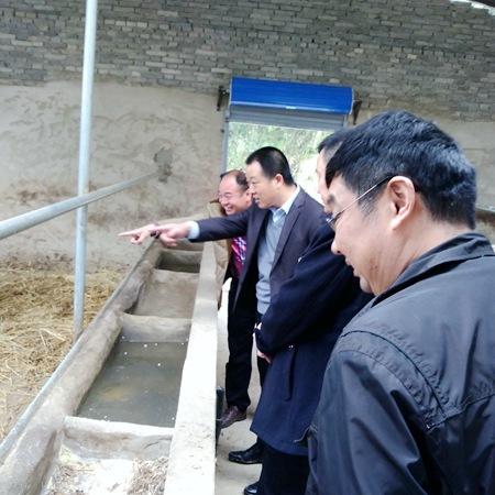 县委常委、政法委书记杜启学一行在大木厂镇东河村察看肉牛养殖情况