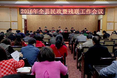 今日房县网讯 记者陈绍杰 通讯员许旭 报道: 30日,我县召开2016年全县民政暨残联工作会议。县人大副主任陈德汉,副县长姚峰,县政协副主席张光斌,县民政局、残联和各乡镇、相关部门负责人参加会议。