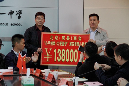 3日上午,北京(房县)商会“心手相牵·大爱圆梦”爱心助学活动在县一中举行。企业家代表们现场捐资爱心助学金138000元,并与27名贫困学生结对,每年资助每个学生1000元直到他们高中毕业。这也是北京(房县)商会第四次回家乡开展爱心助学活动,四年里共资助了185名贫困学生。