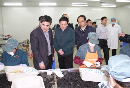 土城镇龙坪村以发展食用菌产业辐射带动贫困户增收致富,通过成立村级食用菌专业合作社,工厂化统一培养商品菌棒,以成本价出售或者赊销给农户分户管理,农户只负责管理、采摘,合作社集中销售。目前,该合作社共带领22户贫困户发展食用菌,每户每年不低于两万袋。龙良文一行首先来到龙坪村食用菌产业园,详细察看了产业园建设,并详细询问了该村产业扶贫、搬迁扶贫和保障扶贫工作进展情况。龙良文强调,房县要充分发挥龙头企业、合作社带动作用,走专业化、标准化、规模化的产业发展之路,最终形成一个完整的产业链,以市场主体来带动产业发展、带领农民共同致富。