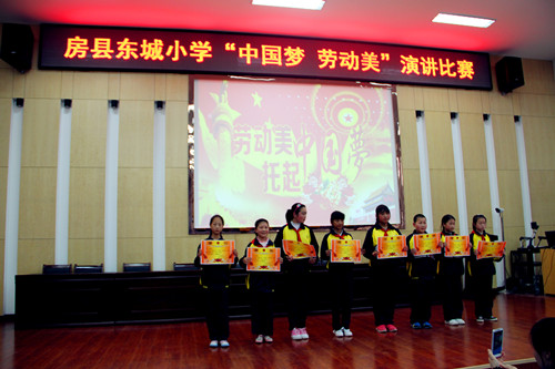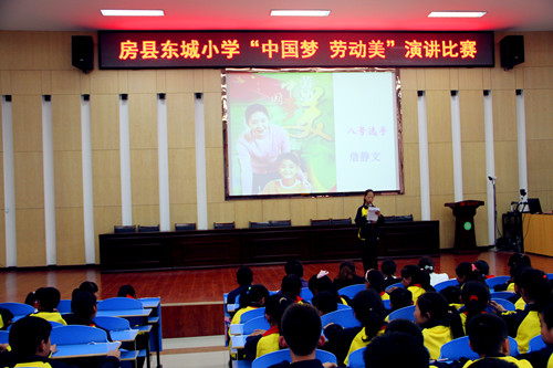 今日房县网讯 通讯员李英报道:4月25日下午,东城小学五年级学生在该校阶梯教室举行了以“中国梦.劳动美”为主题的演讲比赛活动。