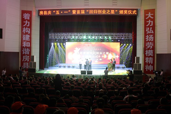 今日房县网讯 记者 陈锐 报道: 回归创业,星耀房县。4月28日下午,由中共房县县委、房县人民政府主办,中共房县县委宣传部、县总工会、县广播电影电视局承办的房县庆“五·一”首届“回归创业之星”颁奖仪式在县影剧院隆重举行,12位房县返乡创业者同时获得“回归创业之星”及“房县五一劳动奖章”荣誉。