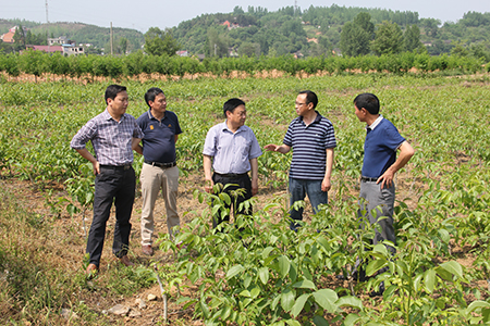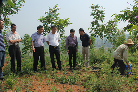 县人大副主任何建平带领县人大视察组在军店镇中村村核桃基地察看