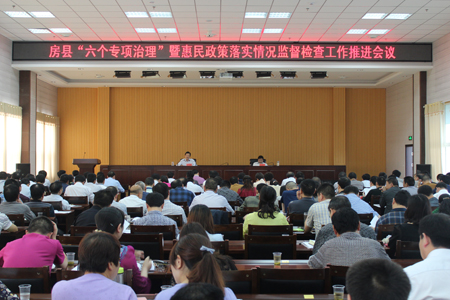 今日房县网讯 记者 王玮 报道:13日,我县召开“六项专项治理”暨运用大数据开展惠农政策落实情况监督检查工作推进会。县委常委、纪委书记姚天国,县委常委、常务副县长王家波出席会议,各乡镇、县直单位主要负责人参加。