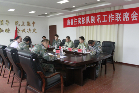 今日房县网讯 记者 高书文 报道:5月20日,驻房部队防汛工作联席会召开,传达省、市、县防汛工作会议精神,安排部署驻房部队防汛准备工作。县委常委、武装部长、防汛指挥部副指挥长邵吉民出席会议并讲话。