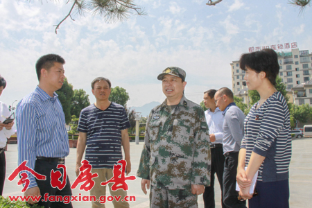今日房县网讯 记者 吴宏强 报道: 25日,省委常委、省军区政委冯晓林率省网信办、省经信委、省水利厅等相关部门负责人,来我县检查指导防汛抗旱工作。市军分区司令员彭水清,副市长张慧莉,县委副书记、代县长纪道清,县委常委、武装部长邵吉民,副县长牟俊仪,县政府党组成员付必久陪同检查。