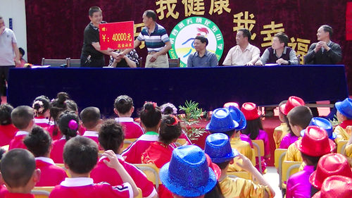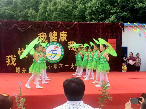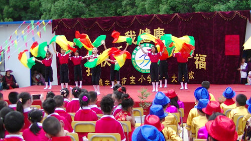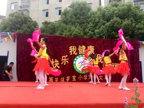 今日房县网讯 通讯员刘慧 报道: 5月30日下午,城关镇花宝小学全体师生举行以“我快乐、我健康、我幸福”为主题的六一文艺汇演活动。500余名家长为孩子们鼓掌加油。45名学生参加了少先队员入队仪式。花宝社区为学校捐赠现金40000元,用于改善学生学习和生活环境。