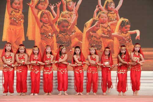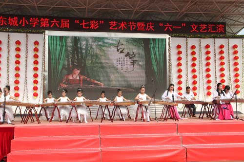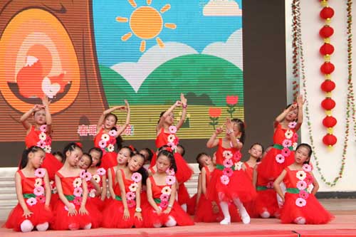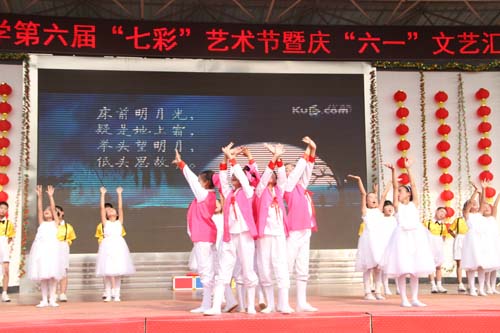 下午4点整,演出在气势磅礴的大合唱《七子之歌》、《让诗经飞扬》中拉开了帷幕,各班的小演员们纷纷上台一展身手,用精心准备的节目来迎接自己的节日。各类节目异彩纷呈,内容丰富多彩,经过近一个月各班刻苦排练、层层筛选、评委打分、研究决定,最后遴选出最具特色的18个节目进行展示。节目通过合唱、舞蹈、古筝合奏、经典诵读、童话剧、歌伴舞、韵律操等多种形式,表达师生们多才多艺的艺术才能,寄托着孩子们的青春梦想和希冀;活泼的舞姿体现了孩子们美好的愿望、矫健的身姿映射出孩子们的一身浩然正气;诙谐幽默的语言和惟妙惟肖的动作演绎着寓意深刻的道理;抑扬顿挫的经典诵读、富有节奏的韵律操表演,既体现了孩子的生机勃勃、充满青春活力的一面,又再现了孩子们与时俱进、极具内涵的一面……观看演出犹如进入盛开的百花园,姹紫嫣红,争奇斗艳,让人美不胜收,无论是台上激情飞扬的演员,还是台下鼓掌喝彩的观众,都在这里尽情欢笑,心头洋溢着快乐和幸福。