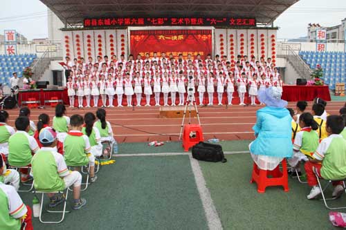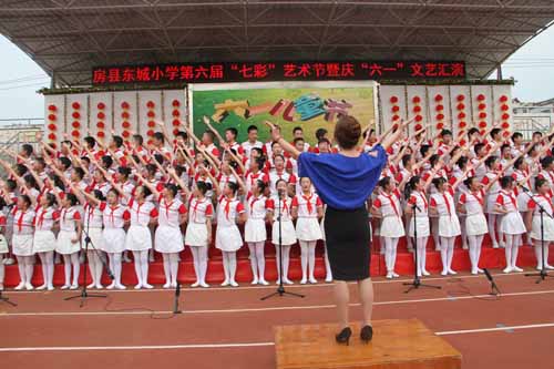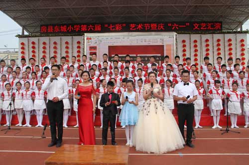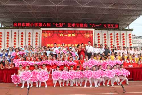 今日房县网讯 通讯员李英报道: 伴着花的芳香,踏着歌的节拍;弹去五月的缤纷,吹来六月的希望。5月30日下午,房县东城小学在该校塑胶操场上隆重举行“美丽东城,幸福家园”为主题的第六届“七彩”艺术节暨庆“六一”汇演活动。该校近3000名师生、部分学生家长欢聚一堂,载歌载舞,谱写和谐旋律,共享属于孩子们的节日盛宴
