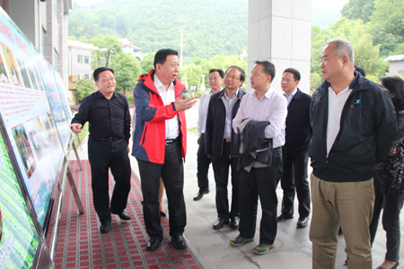 汪民(左二)视察、指导我县地质灾害防治工作