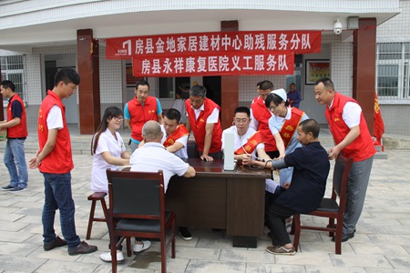 当天上午,房县大爱义工、房县金地家居建材中心助残服务分队、房县残疾人培训中心的爱心志愿者们还来到城关镇炳公村陈永榜家献爱心。陈永榜今年82岁,双目失明,儿子在外打工,收入微薄,儿媳妇出走五年,杳无音讯,两个10多岁的孙子、孙女患有脑瘫,生活不能自理,一家三个残疾人全靠70多岁的老伴照顾,虽然国家为他们盖起了新房,办了低保,但生活仍十分困难。爱心志愿者为两个脑瘫孩子送来了轮椅,并现场为他们清洗,换上了捐赠的新衣服,同时为陈老汉家捐赠了水果、食用油、大米等。金地家居建材中心总经理柴长胜表示,他们会继续履行企业社会责任,为陈永榜家提供必要的帮助。