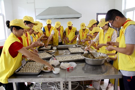 9日一早,白鹤镇农村福利院格外热闹,大爱义工、爱心驿站等多支志愿者服务队这来到这里奉献爱心。大爱义工、美乐多超市、金地家居建材中心的爱心志愿者们为福利院民送来了时令水果、即食食品、多功能拐杖等;永祥康复医院义工服务队的医生们还免费为51位院民做了健康体检;爱心驿站的义工们将削好的水果一一送到院民手中,71岁的院民王明权双目失明,行动不便,义工雷鹏等走进他的寝室,将香蕉剥好递到他的手中;义工雷娟自己也是残障人,但她一刻也没闲着,有着理发手艺的她,不大一会儿便对7位院民进行了“美容”;爱心驿站的义工们还提前准备了饺子皮、饺子馅,走进院民厨房,现场为院民包饺子,中午边为院民表演精彩的文艺节目,边和他们一起喜吃饺子宴。