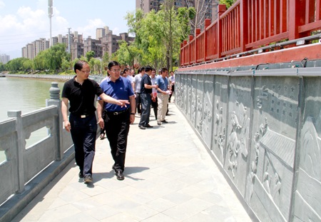 军店镇三溪沟村的1.2万亩中药材示范基地已基本建成,年产值可达1.5亿元,可带动当地500多农民就业。在参观过程中,标准化的中药材种植基地、育苗繁殖大棚、“租金+薪金+股金”产业扶贫模式都给考察团一行留下了深刻印象。随后,考察团一行实地考察了军店镇双柏搬迁小区、城区半岛湾公园建设和管理情况。