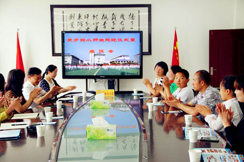 欢迎仪式上,良乡四小的6位小朋友用标准的普通话落落大方地作了自我介绍,6位东城小学家长热情认领从北京市远道而来的 “儿子”、“女儿”,替孩子们在政教处领取了校服、学习用具、生活用具。6位小朋友在东城小学校长卢清泉的带领下,兴致勃勃地参观了校容校貌,与“新爸爸”、“新妈妈”一起来到文化长廊合影留念,并跟随新老师来到教室,认识任课老师和学生。下午,良乡四小的2位老师走进新班级开始授课,6名小朋友则走进新班级开始上课学习。