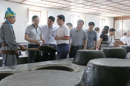 蔡贤忠一行在醋业公司看了解了解山西陈醋的历史渊源、民俗文化