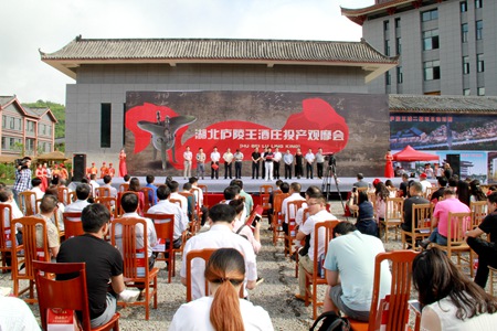 观摩会上,王晋洪、蔡贤忠和湖北庐陵王酒庄董事长胡昭共同为庐陵王酒庄投产按下启动球;湖北庐陵王酒庄与土城镇政府签定黄酒收购协议;庐陵王酒庄与上海顶端智库、上海牧马人投资管理有限公司、江苏微隐客品牌发展有限公司联合成的立庐陵王酒文化交流与创新传播中心正式揭牌;庐陵王和北京生物技术开发中心及中国中科院中医药研究所共同成立的中国米香白酒发酵及鲜黄酒保鲜生物技术研发中心正式揭牌;县食药局代表县直部门作表态发言。