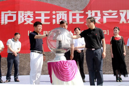 王晋洪、蔡贤忠和湖北庐陵王酒庄董事长胡昭共同为庐陵王酒庄投产按下启动球