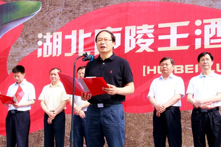蔡贤忠在致辞中指出,房县拥有优良的气候、优质的水源和大米,更有上千年传承的酿酒工艺,发酵、酿酒产业在房县有得天独厚的优势。房县要以庐陵王酒庄的投产运行为起点,力争用三到五年的时间,致力于打造产值过百亿的发酵基地。庐陵王酒庄的运行投产为房县农产品加工企业又添加了一张靓丽的名片,为“精准扶贫、产业先行”又探索了一条新的发展模式,必将为发展旅游、财政增收、农民致富发挥积极作用,为全县农业产业化发展起到带动和示范效应,助推全县精准扶贫迈向一个新的台阶。