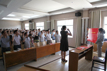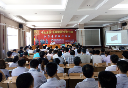活动分两个环节进行。第一环节为“支部主题党日”,100余名党员佩戴党徽,齐唱国歌,重温入党誓词,诵读党章,现场气氛庄严热烈,极大地激发了党员的责任感和荣耀感。县党史办邹清斌同志为大家带来了一堂生动的党课,回顾了中国共产党成立95年来的光辉历史,让党员同志牢记党的历史丰碑、长征精神、中国梦的核心要义,激励广大党员,牢固树立责任意识、担当意识和大局意识,提思想认识,发挥好先锋模范作用。