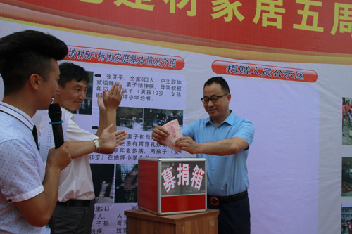 今日房县网讯 记者赵爱平 通讯员付华 报道:“这是心的呼唤,这是爱的奉献”,7月2日,是房县金地家具建材广场开业五周年庆典的大喜日子,该广场庆典不摆宴席、不收礼金,而是号召大家在《爱的奉献》音乐声中,为姚坪乡捐款助残。