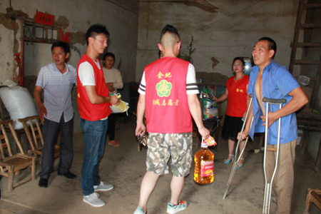 今日房县网讯 记者 高书文 通讯员 付华 报道: 7月7日,在县残联和文明办的组织、指导下,由爱心企业员工、精神病院和康复医院医生组成的助残志愿队,前往姚坪乡,为部分贫困户、精神病患者和福利院老人们送去爱心。活动中,房县金地家居建材有限公司爱心志愿者根据前期摸底情况,为西坡村五户残疾贫困户按需送去3台冰箱、1台液晶电视、18袋(壶)粮(油)。房县精神病院爱心志愿者回访了西坡村的精神病患者,察看患者当前病情。房县永祥康复医院助残志愿者们为姚坪乡福利院老人们开展了义诊,并送上日常常备药品。