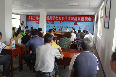 今日房县网讯 记者 高书文 通讯员 任志勇 报道: 7月13日,在新建起的房县城关镇三海村文化大院道德讲堂礼堂内,县文明办、该村村组干部与三海村十星级文明示范户、“身边好人”、根艺盆景等五大协会成员等四十余人齐聚一堂,举行人情新风暨文化大院建设座谈会。