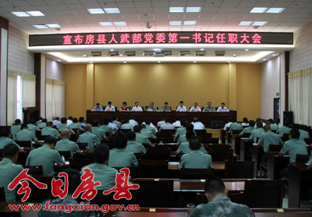 今日房县网讯 记者 吴宏强 报道: 14日,县人武部党委第一书记任职大会召开。市委常委、市军分区政委宋继光宣布任职决定并讲话,县委书记、县人大常委会主任、县人武部党委第一书记蔡贤忠作任职表态发言。县长纪道清,县政协主席张慧彬,县委副书记、常务副县长王家波,县委常委、宣传部部长徐锦凤,县委常委毛坚权,县委常委、组织部部长陈刚,县人大常委会副主任陈德汉出席任职大会,县委常委、县人武部部长邵吉民主持会议。