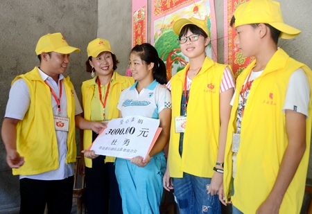 志愿者向杨丽丽送去爱心捐款