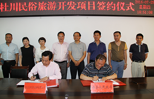 我县与三三集团签约红豆杉加工和杜川民俗旅游项目