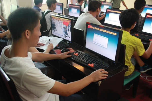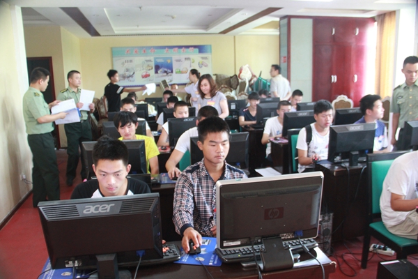 4日,应征青年正在接受职业基本适应性检测。记者在县人武部了解到,自8月1日启动征兵体检以来,我县已有510余名应征入伍青年完成体检,预计5日下午将全面完成体检工作。据悉,我县2016年网上报名参军人数1200人,经过初轮筛选,630人确定为预征对象,与去年相比进站率增加30%,大学生达到50人。根据计划,我县于本月10日至25日对体检合格应征青年进行公示和政治考核,9月4日开始向部队输送新兵。 (陈锐 罗冬琴 摄)