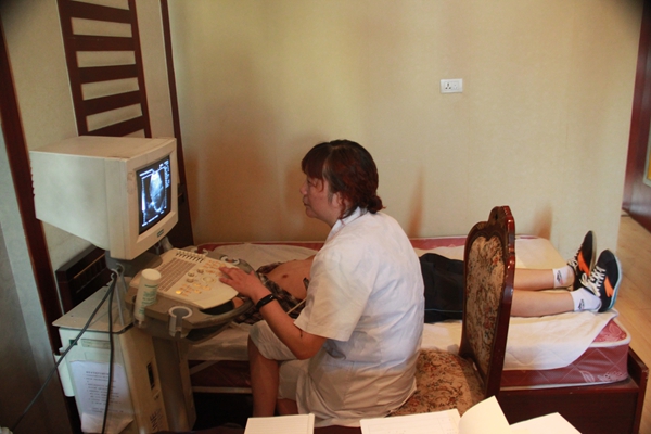 图为应征青年正在进行B超检查
