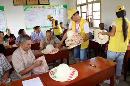 发放爱心消暑物品