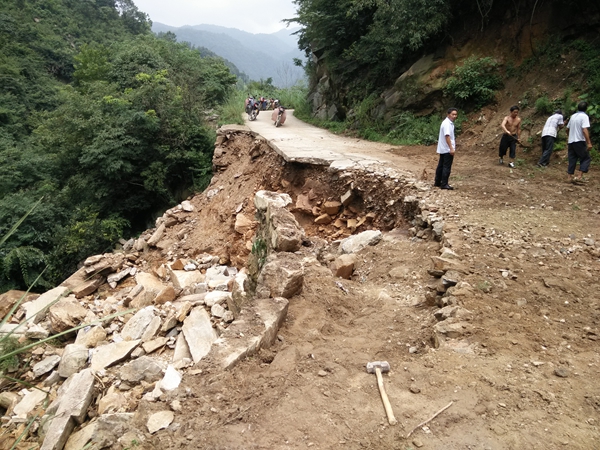 茅山村道路中断