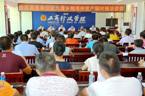 今日房县网讯 通讯员代涛 贾永明 报道: 为践行“两学一做”助推全县精准扶贫工作,促进九道乡贫困户的土特产品落户城区企业、大中型超市、商场。8月17日,房县工商局联合九道乡精准扶贫指挥部、九道乡党委政府以“开展产销对接 助推精准扶贫”为主题,在县工商局召开了县直单位驻九道乡面对面的精准扶贫产销对接洽谈会,旨在引导消费需求,降低运输成本,畅销更多的具有地方特色的九道土特产品销售渠道,促进企业得实惠、产业得发展的“双赢”局面。九道乡特色组织代表、城区部分经营户代表及九道乡、县工商局领导班子等共90余人参加会议。县政协副主席、驻九道乡精准扶贫作战指挥部政委张光斌出席会议并讲话。