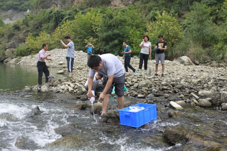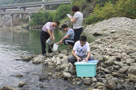 今日房县网讯 记者 高书文 报道: 马栏河流域污染事件的后期流域环境质量状况如何?污染物对环境影响有多大?9月6日,由副县长姚峰牵头,襄阳市、十堰市和房县环保局“两地三方”的环境监测站工作人员,一同前往位于尹吉甫镇的马栏河口流域监测点会商采样,对水质跟踪监测,助推马栏河水污染治理。