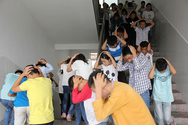 下午3时,现现指挥长宣布演练开始,防灾警报响起,老师组织学生迅速有序向预定的“安全地带”操场集合,老师清点人数,确定所有学生全部安全撤离;随后,防空警报鸣响,第二项演练开始,在引导员的指挥下,现场师生按照演练预案要求,迅速从操场疏散到楼道、树林等隐避位置。整个活动紧张而有序,两项演练活动中演练人员均在3分钟内完成撤离,达到了预期效果。随后参加演练的师生们还参观了防空、防地震知识宣传展,参加了爱国教育培训。